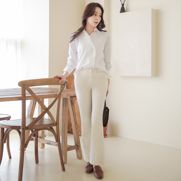 밑단에서 살짝 퍼지는 세미 부츠컷으로