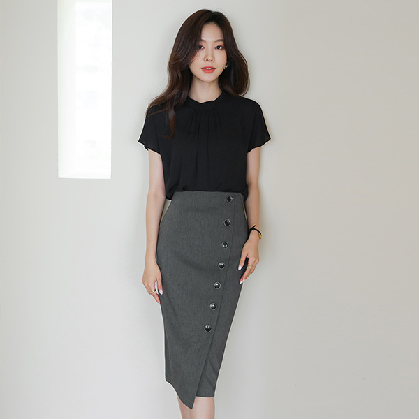 Oblique Button Classic H-line Skirt