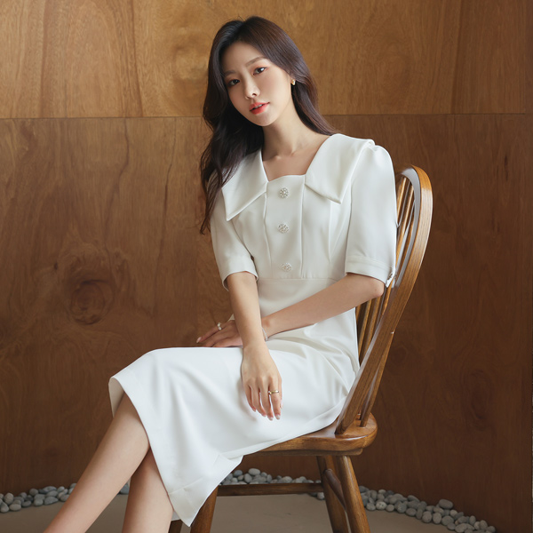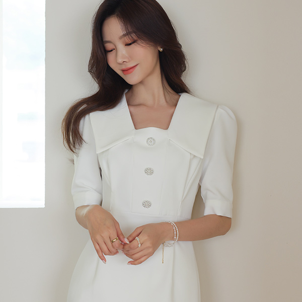 Romantic Pearl Button White Collar Dress