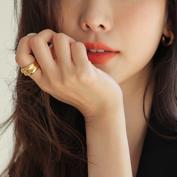 Double bold lines Glossy Point Ring