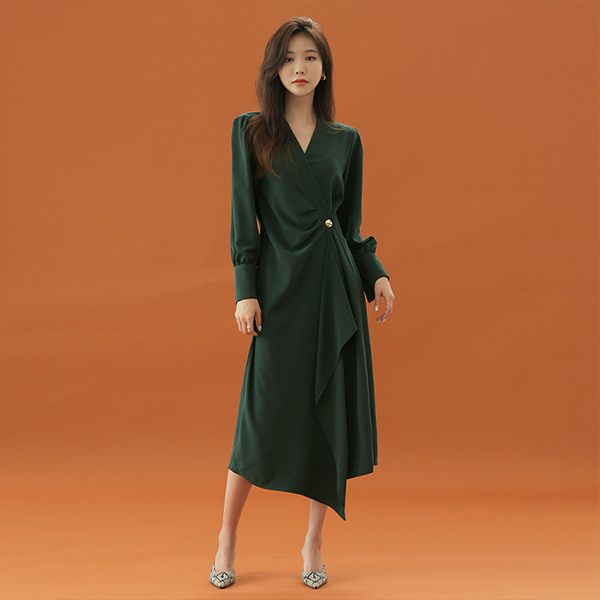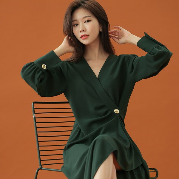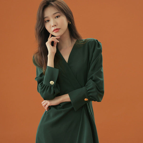 Bishop-Sleeve Goding Button Goddess Dress