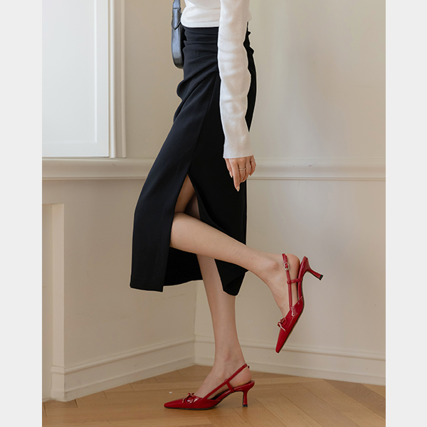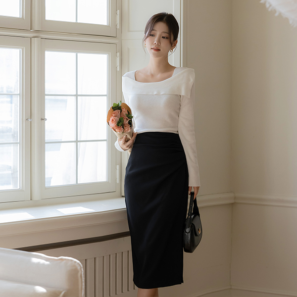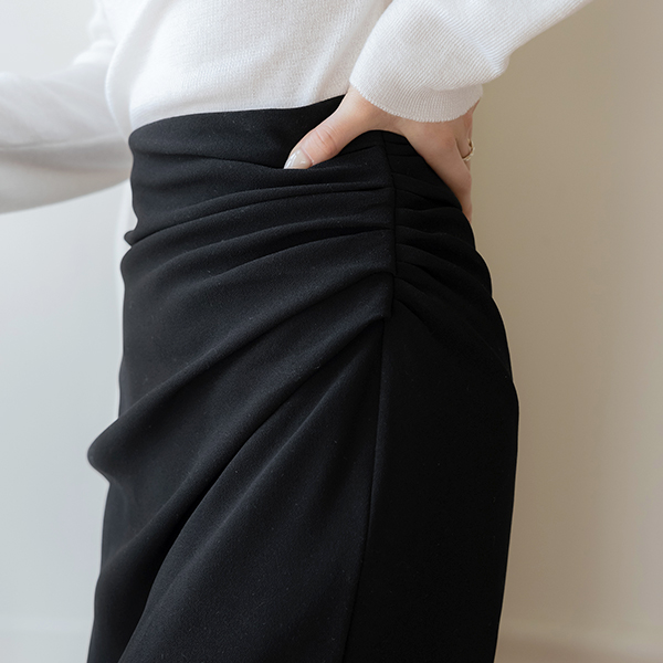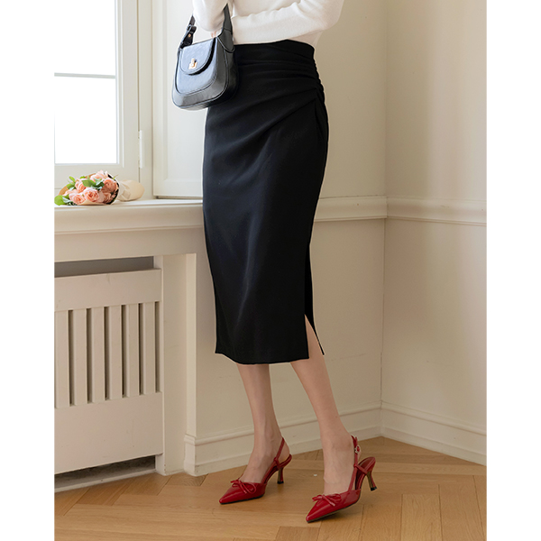 Side Shirring Deep-Slit Skirt