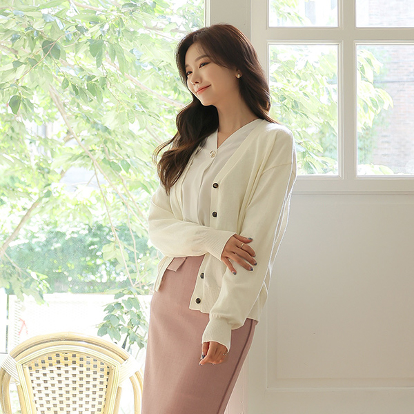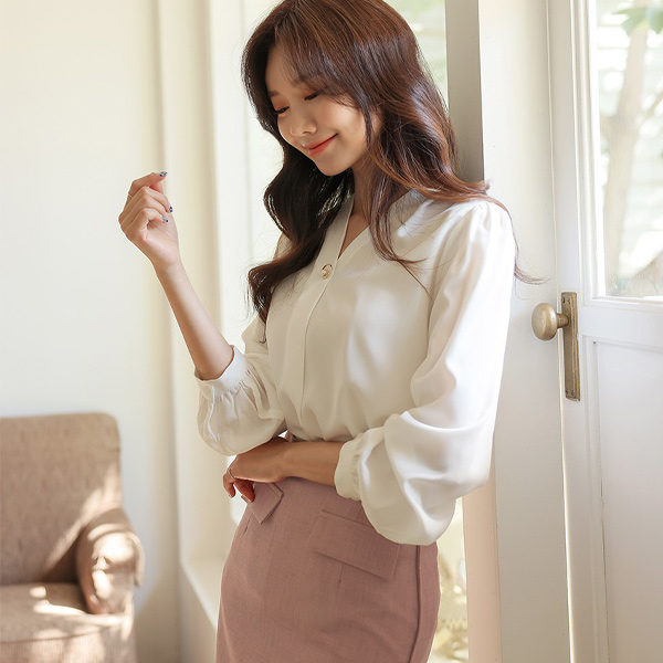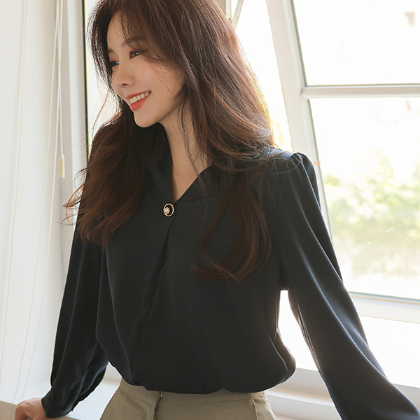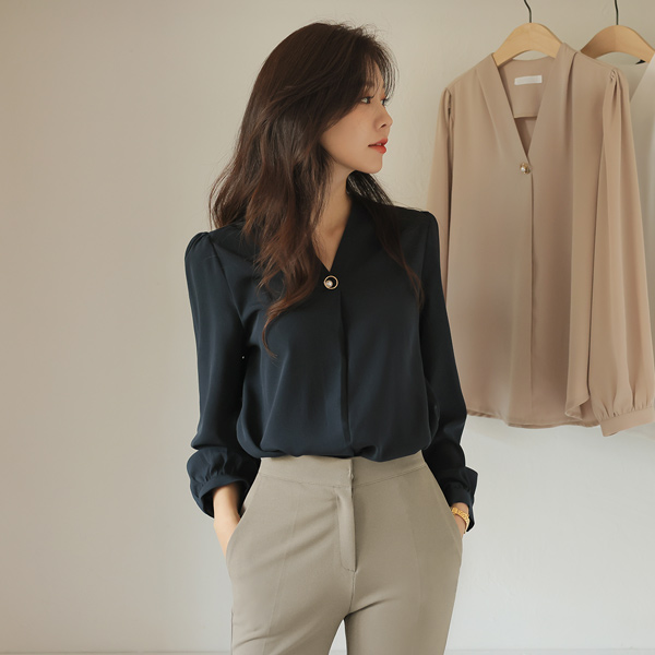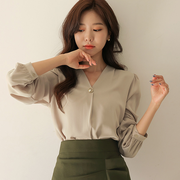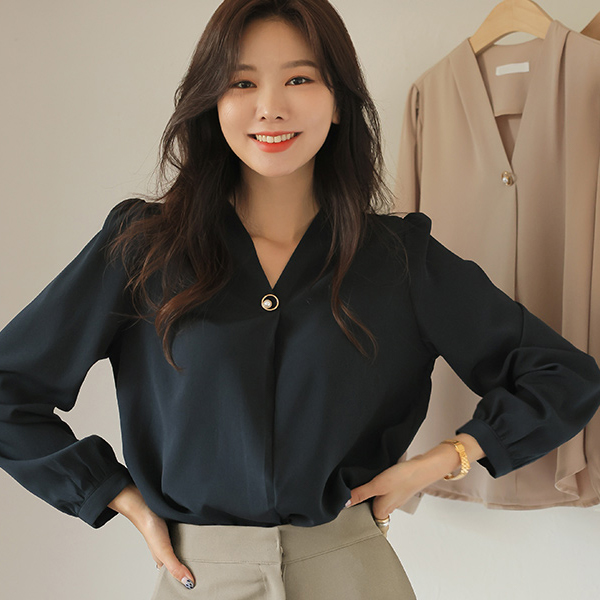 V-neck Gold Ring Pearl Point Blouse