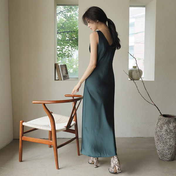 Elysee Satin V-neck Skily Long Dress