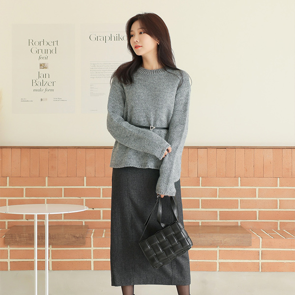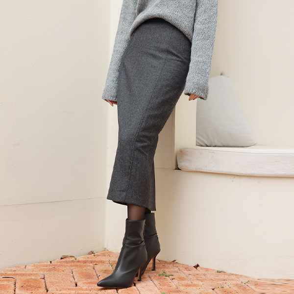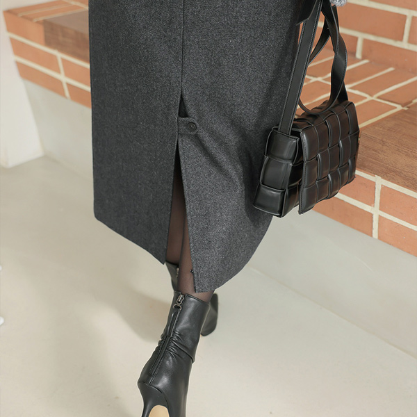 Back-Button Point Winter H-line Wool Skirt
