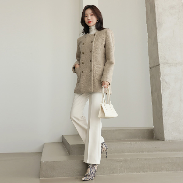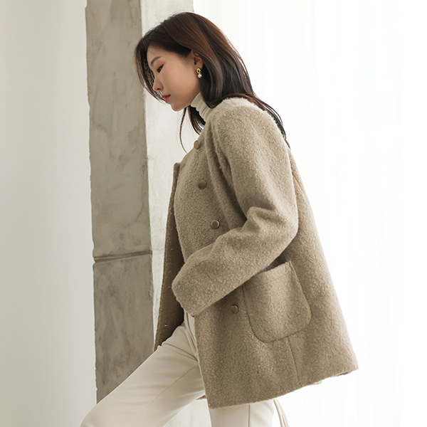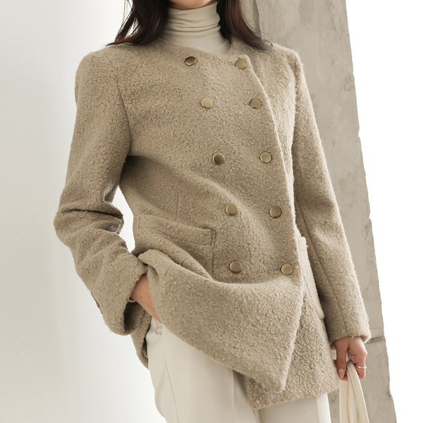 Bouclé Matte gold Double-button Jacket(quilted lining)