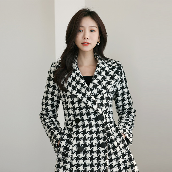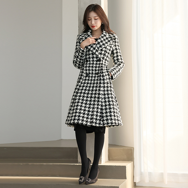 Hound's-Tooth Patterns Luxury Flared Wool Coat