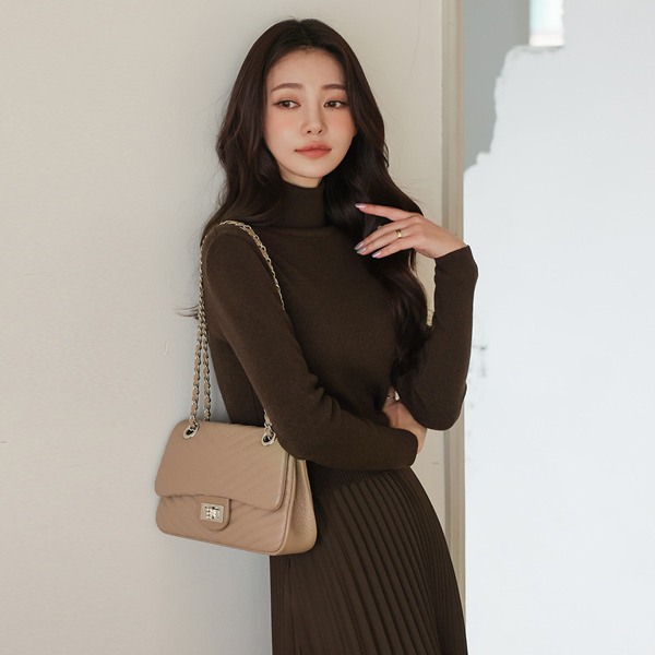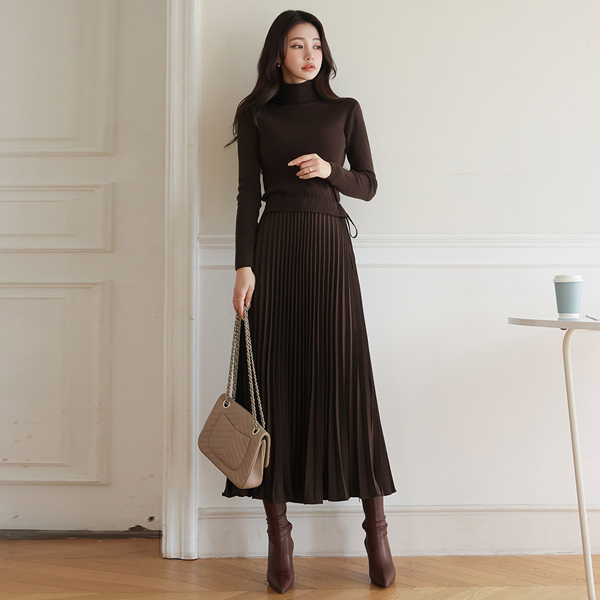 폴라넥 니트와 플리츠 스커트가 어우러져