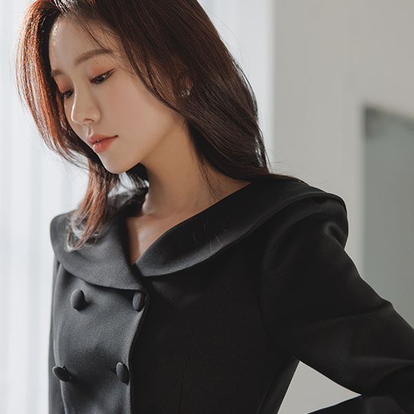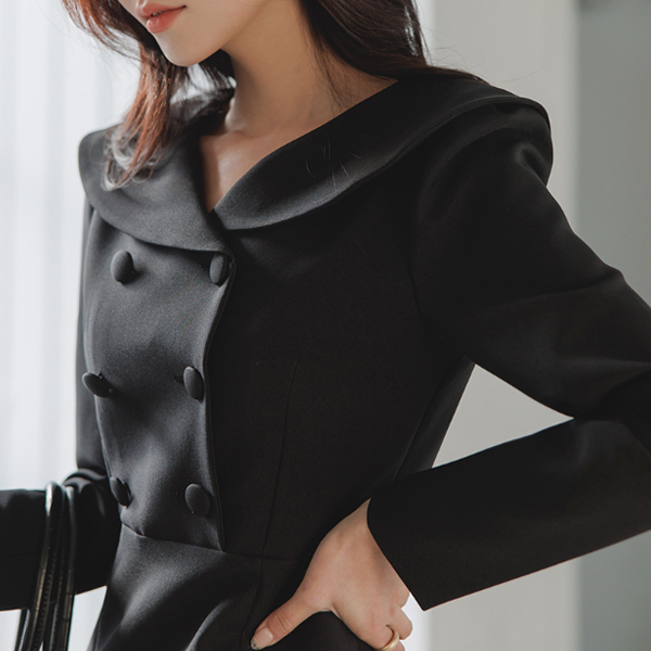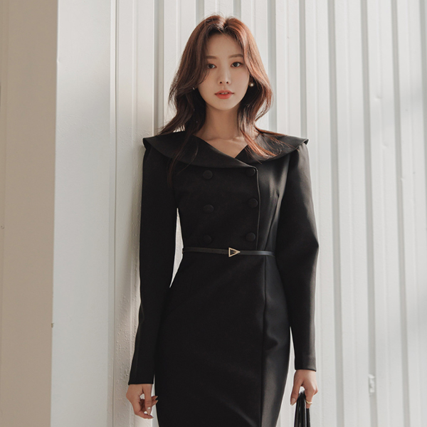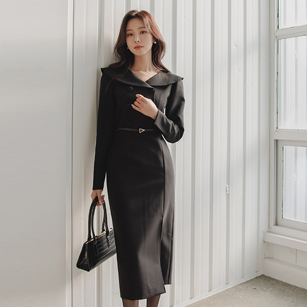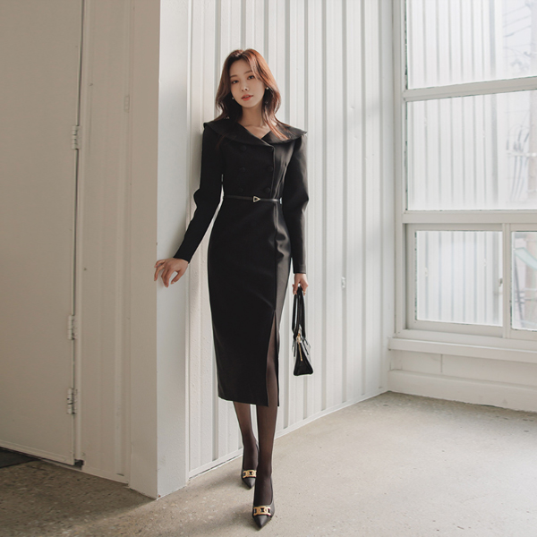 Classic Line Collar Point Deep-Slit Dress
