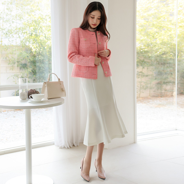 밑단까지는 부드럽게 웨이브치듯 떨어지는 머메이드라인으로