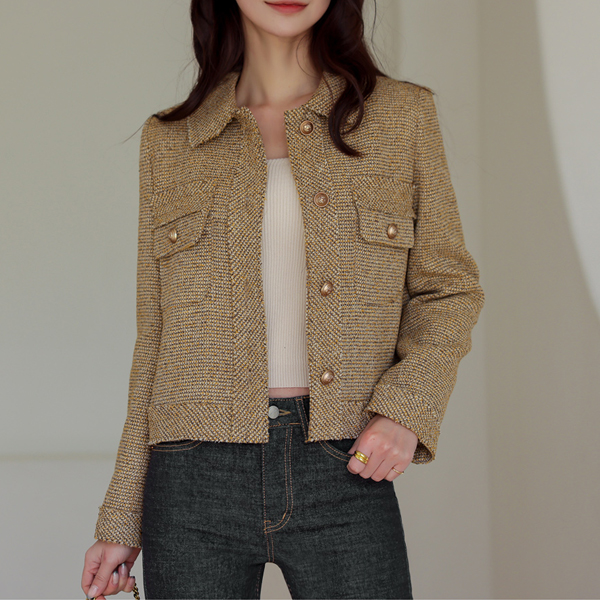 느껴지는 싱글카라넥 트위드 자켓