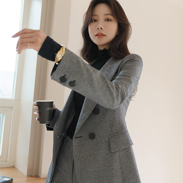 Classic Check Tailored Collar Double Set-up Jacket