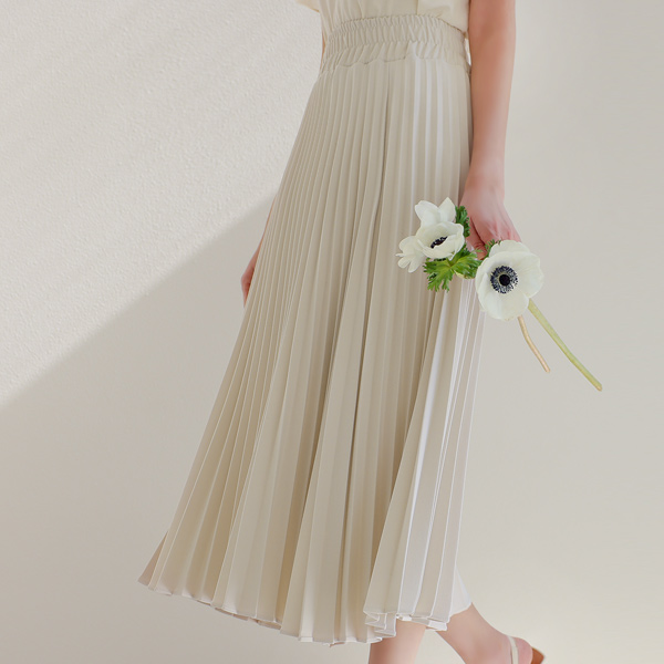 파스텔 컬러 플리츠 롱 스커트