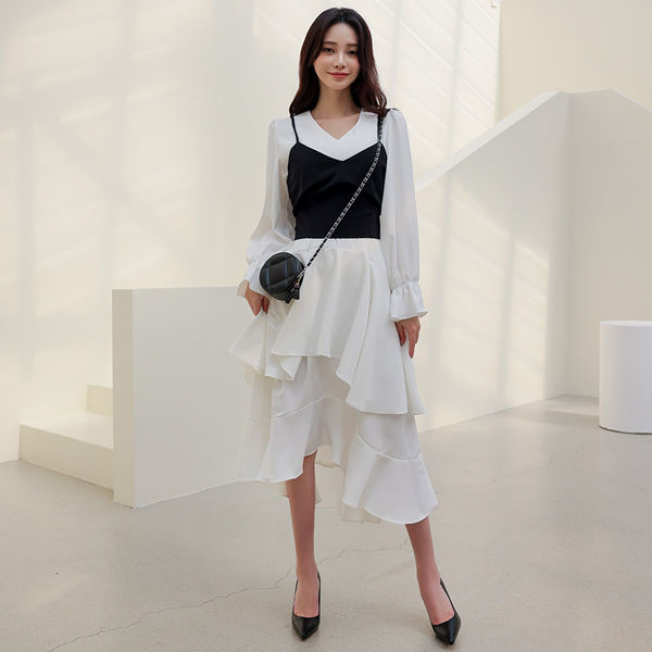 봄 느낌 가득 담아낸 레이어드 원피스랍니다