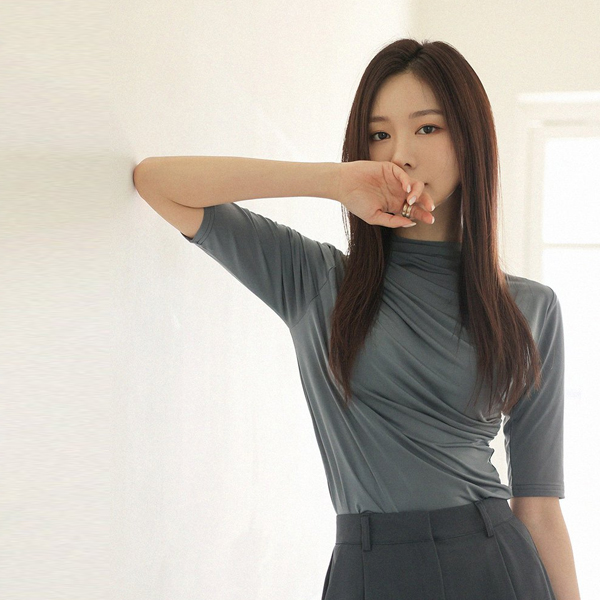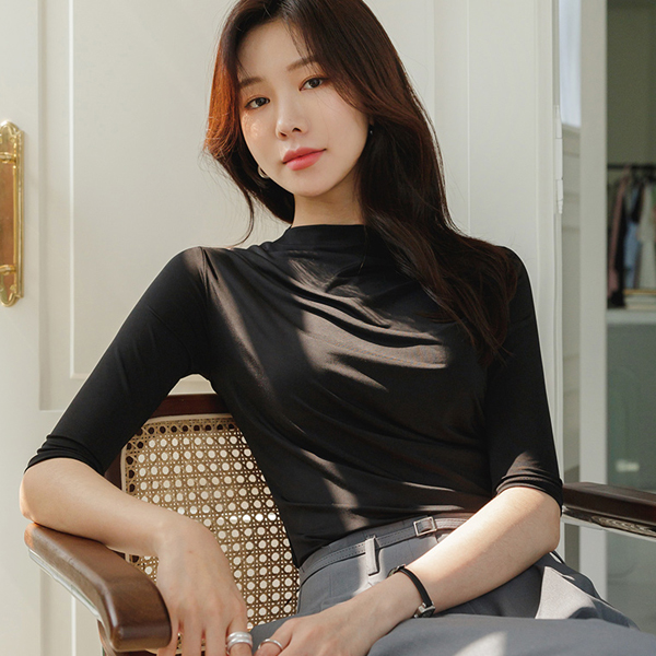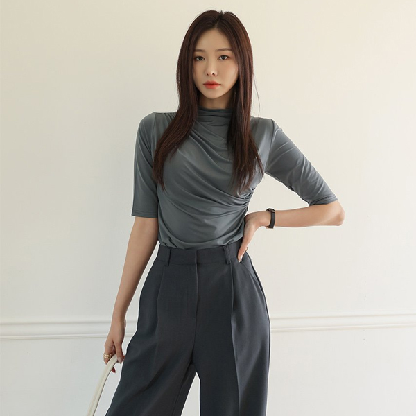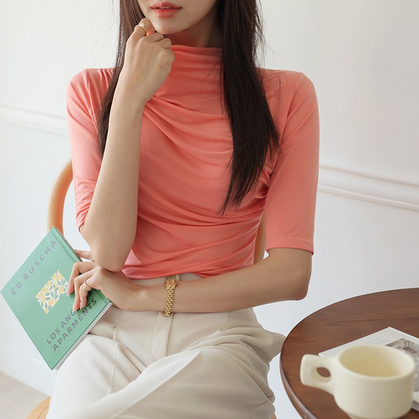 Soft Shirring Point Half-Highneck T-shirt