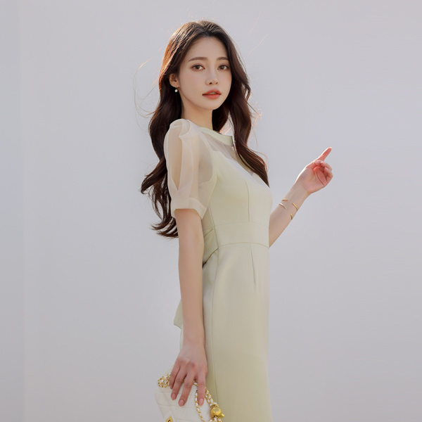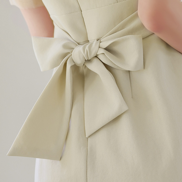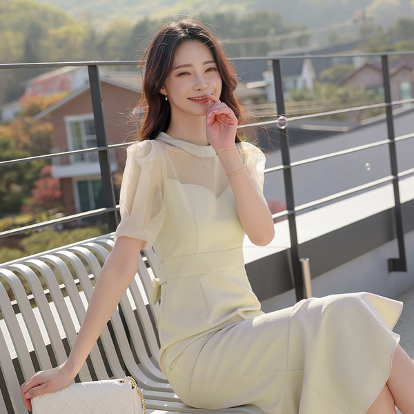 넥 라인과 소매 라인은 가벼운 오간자 소재가 더해져