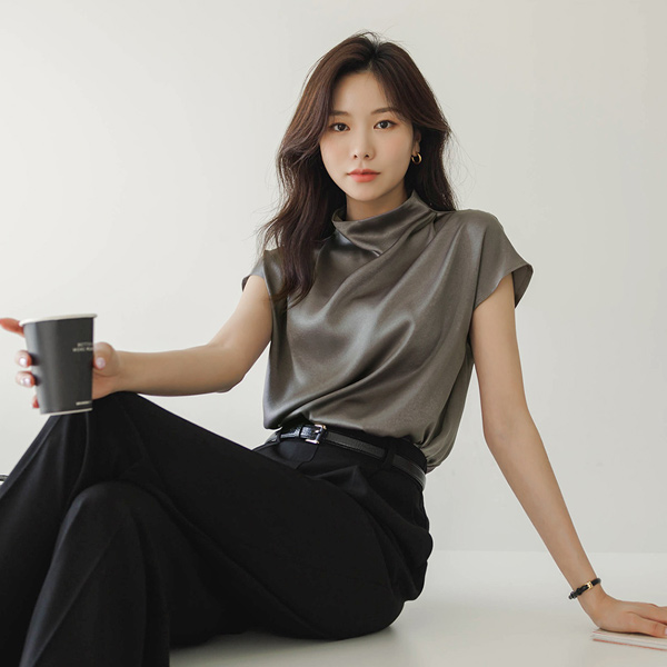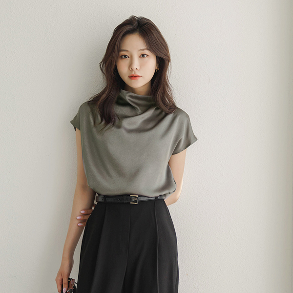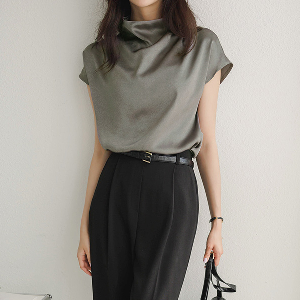 Shining Half-Neck Elegance Blouse(Summer)