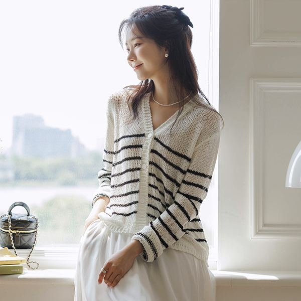 Pretty fit Stripe Summer Knit Cardigan