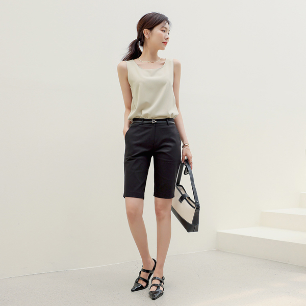 Basic Slim Fit Cotton Midi Span Pants