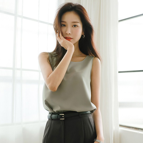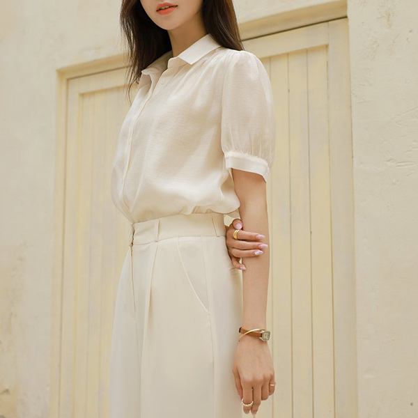 Delicate Glossy Tencel Puff See-through Blouse