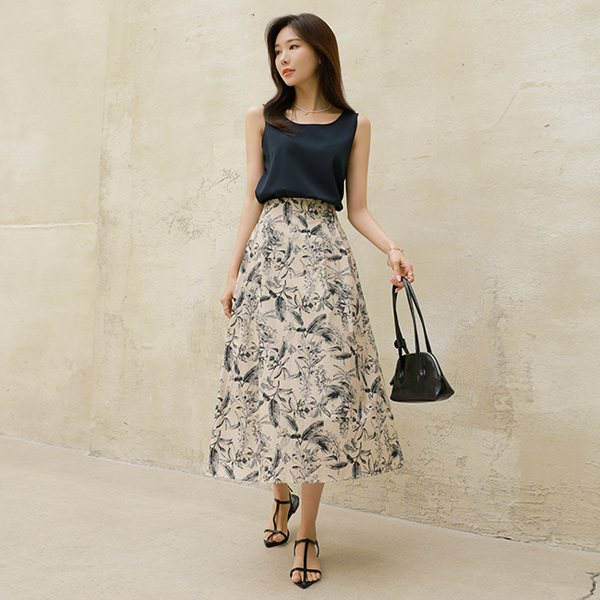 Patterns Point A-line Back Banding Cotton Long Skirt