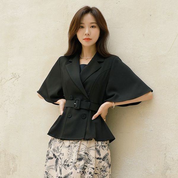 wing Sleeves Point Two button Peplum Jacket (BeltSET)