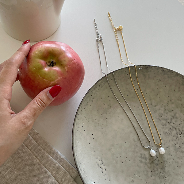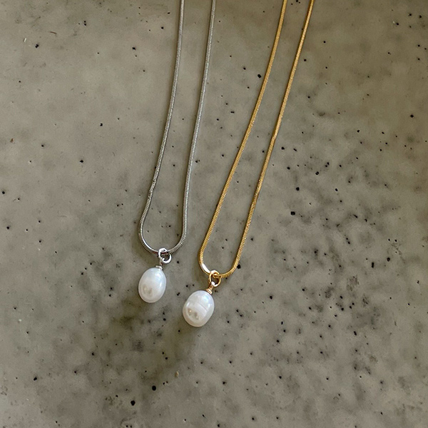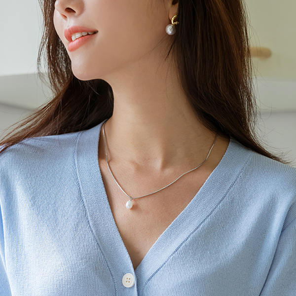 Simple Snake Chain One Pearl Point Necklace