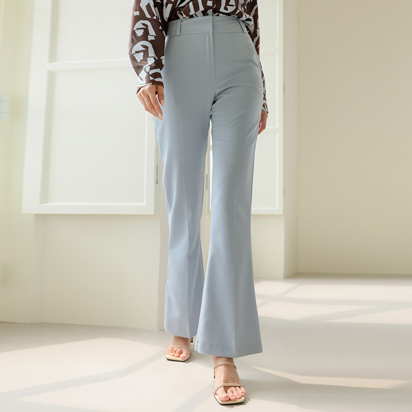 Wide Obi-Line Slim Boot-Cut Long-legged Slacks
