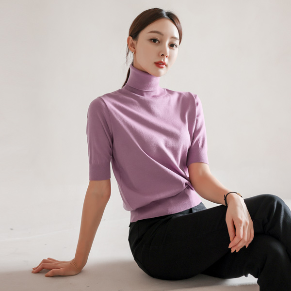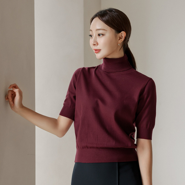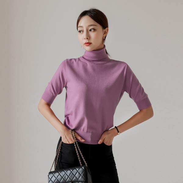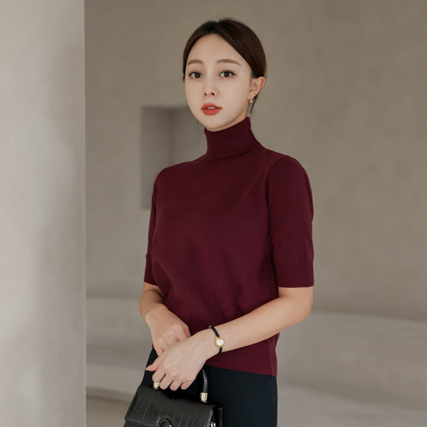 높게 착용될 5부 소매 폴라 니트