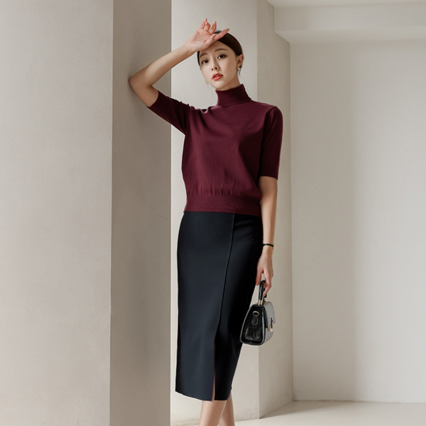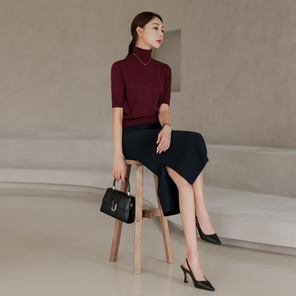 베이직한 5부 소매 기장의 폴라 니트 소개해 드려요 :)