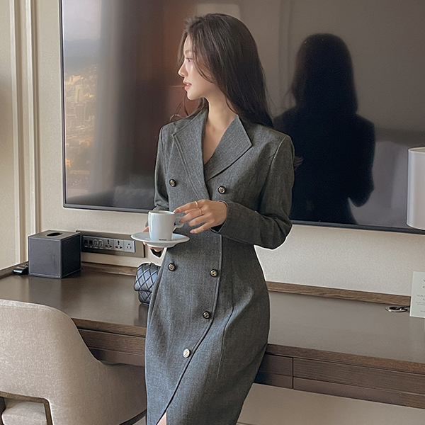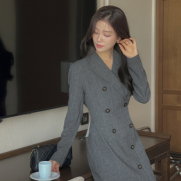 Diagonal Check Wing Collar Double Button Dress