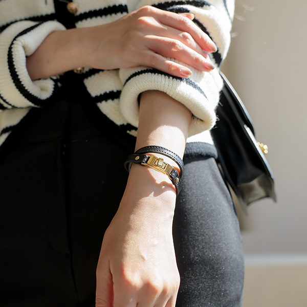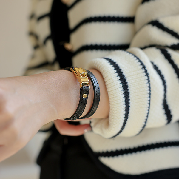 Cowhide layered Buckle bracelet