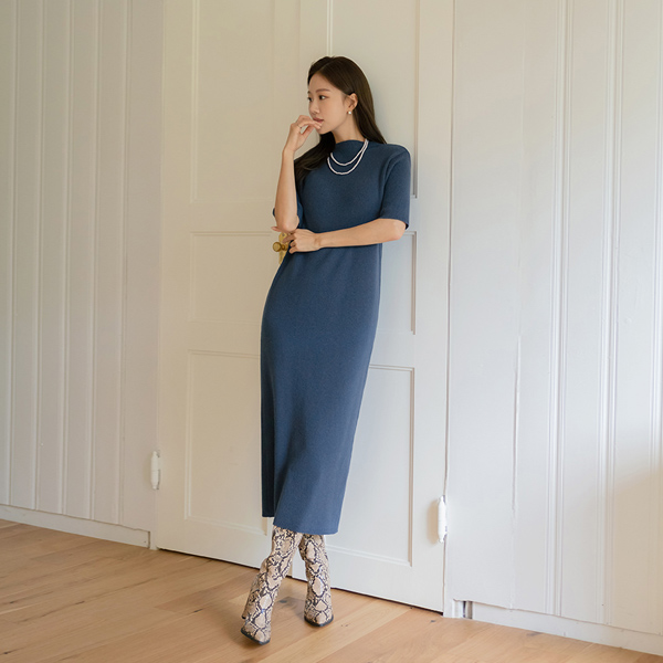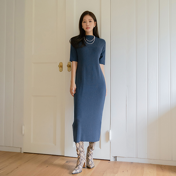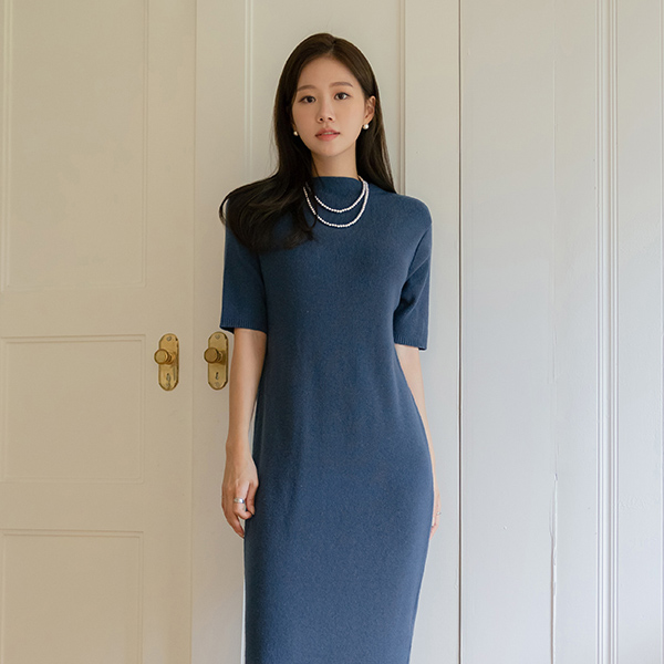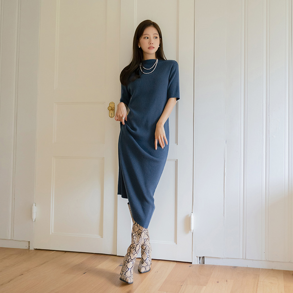 Soft Cashmere Half-Neck Knit Long Dress