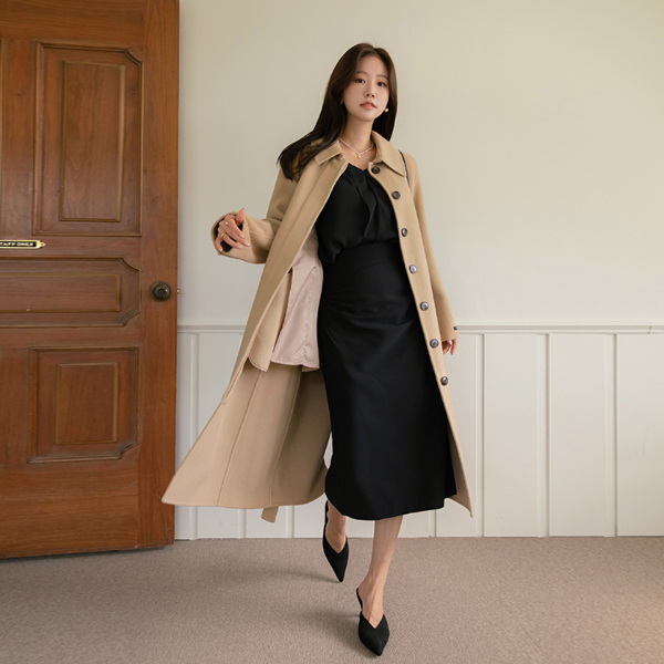 Classic Mood Hidden Button Polo Hand-Made Wool Coat