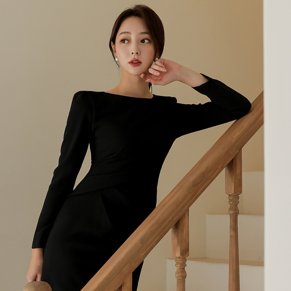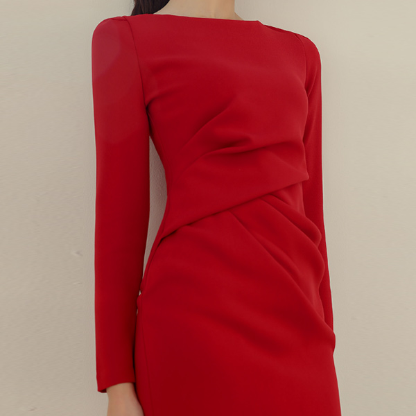 글래머러스한 셔링 디테일의 드레이프 원피스