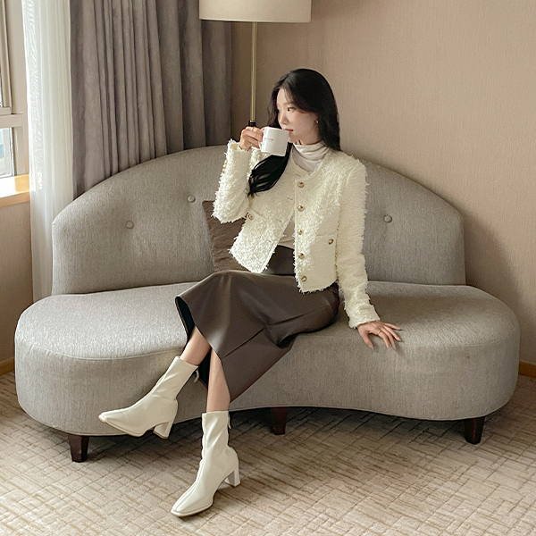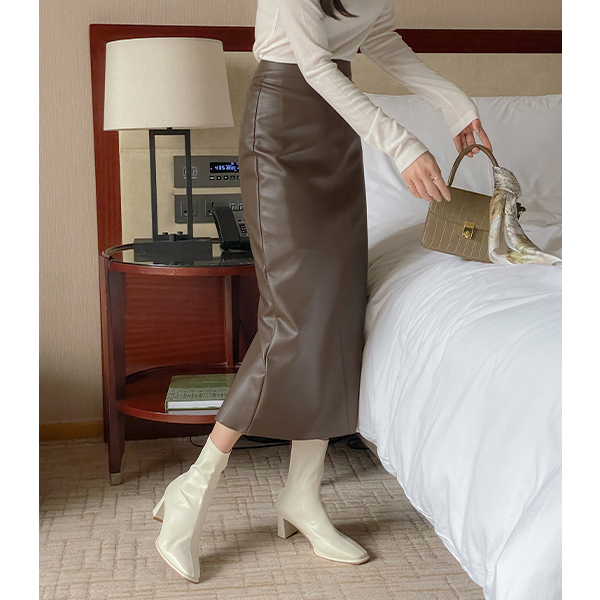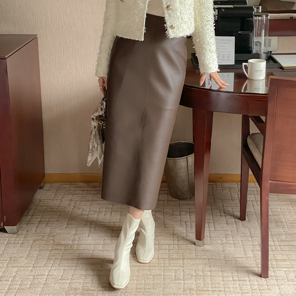 Back Slit Eco Leather H-line Skirt