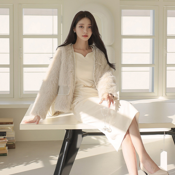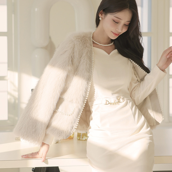 Pearl Lining ECO-Fur Open Jacket (quilted lining)