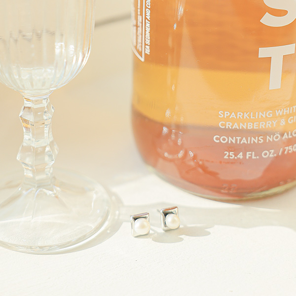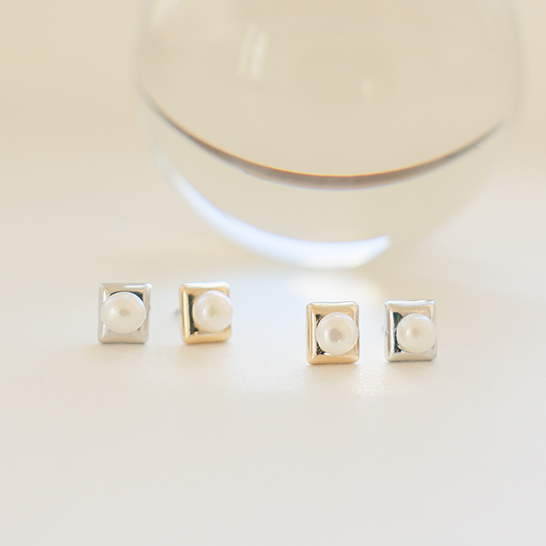 Mini Square Pearl Earring