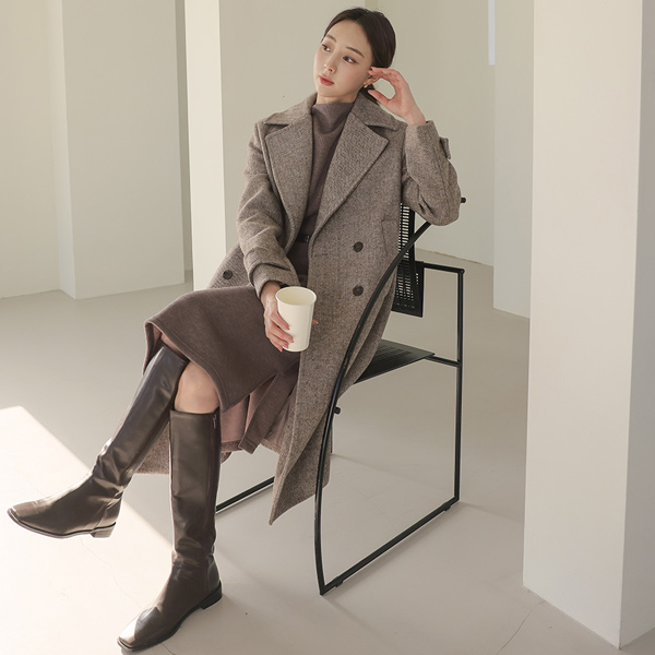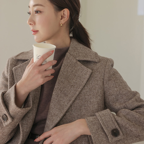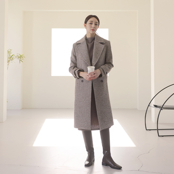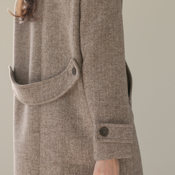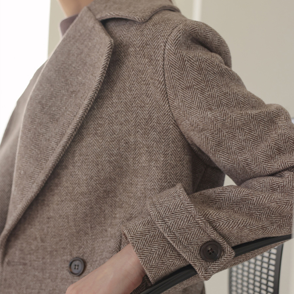 Wide Collar Herringbone Double Button Wool Coat