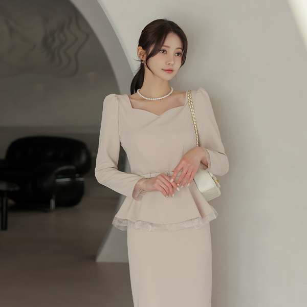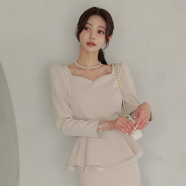 Romantic Heart Neck Organza Trimming Peplum Blouse