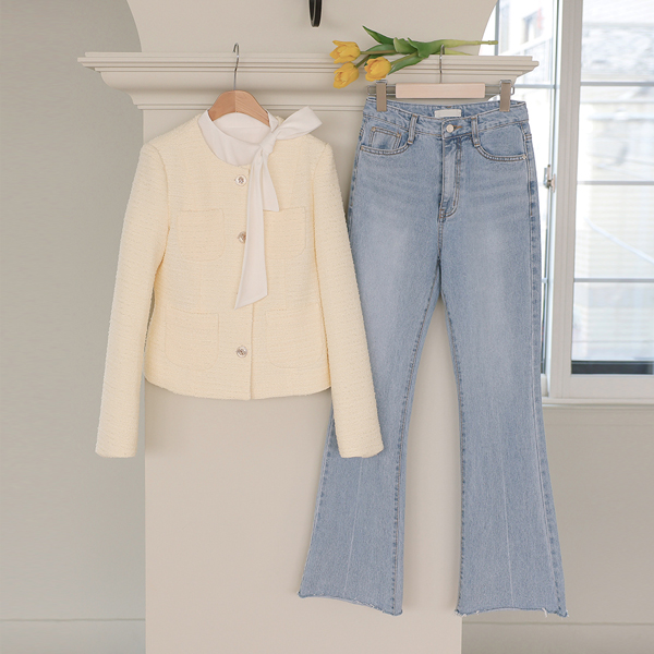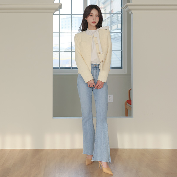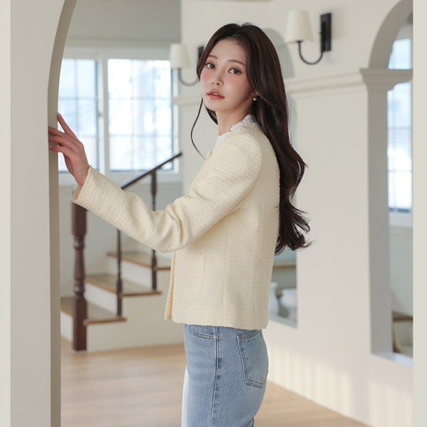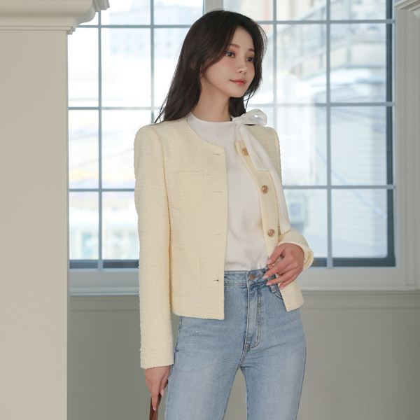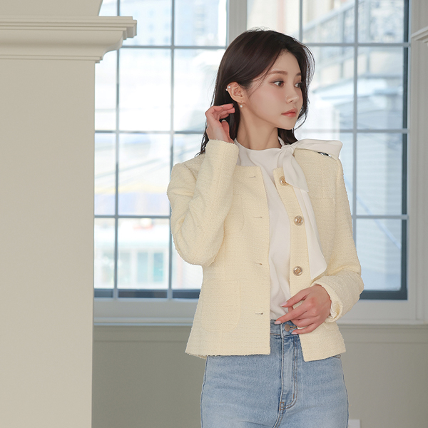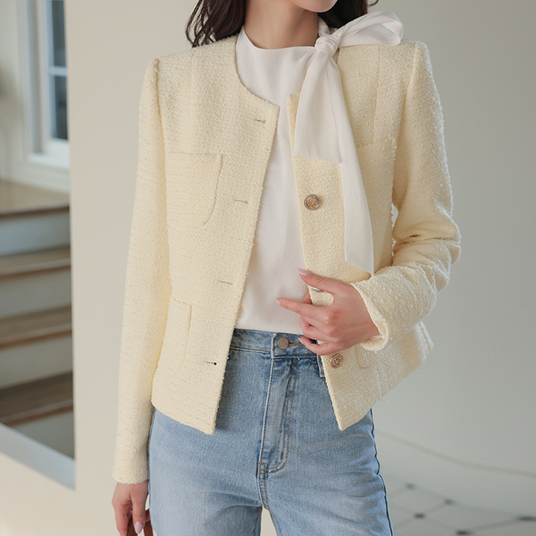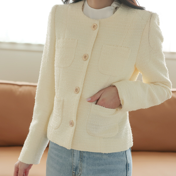 Bouclé Raund neck Gold Button Tweed Jacket