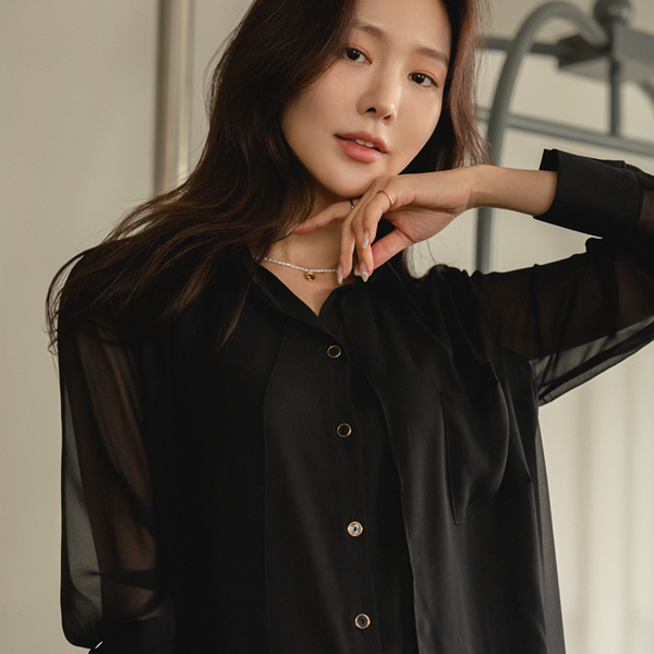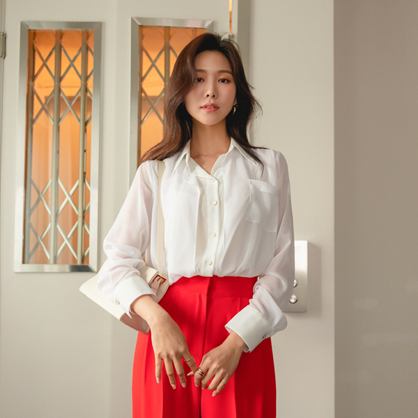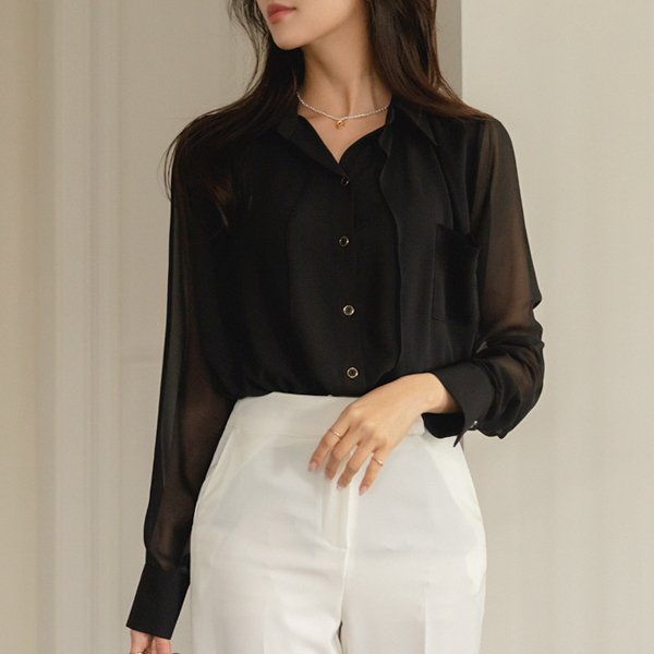 Gold-Ring Button Double Fabric Chic Blouse