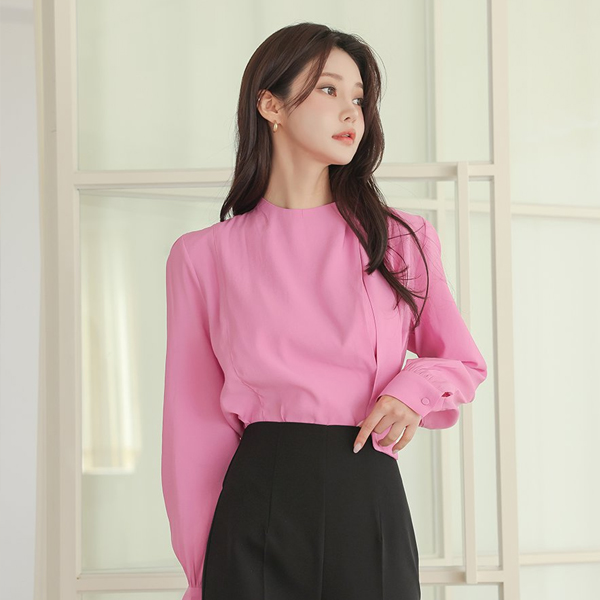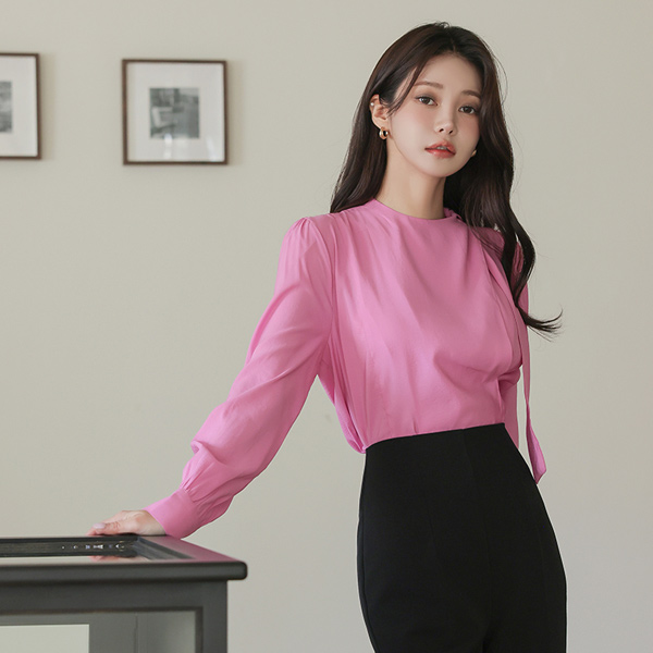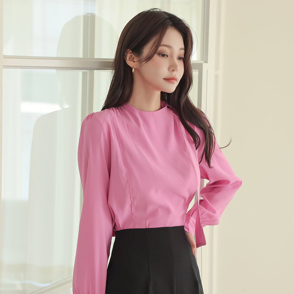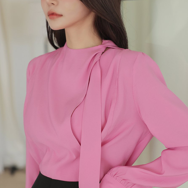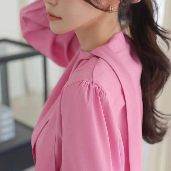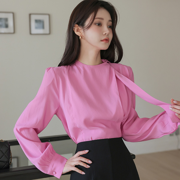 Vivid Side Center Front Vent Unbalance Tie Blouse