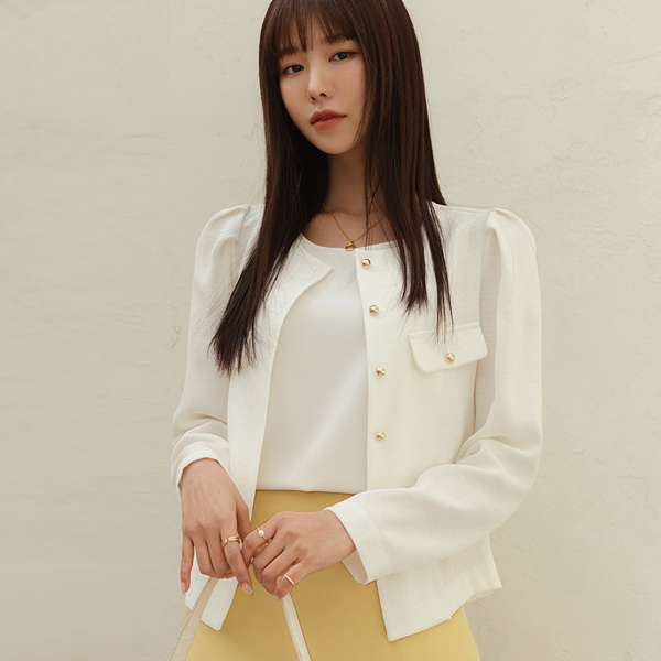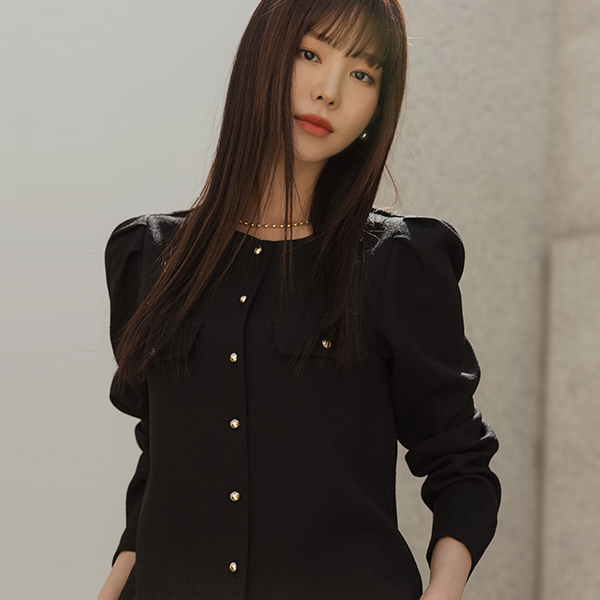 Romantic Puff Shoulder Gold Button Blouse Jacket
