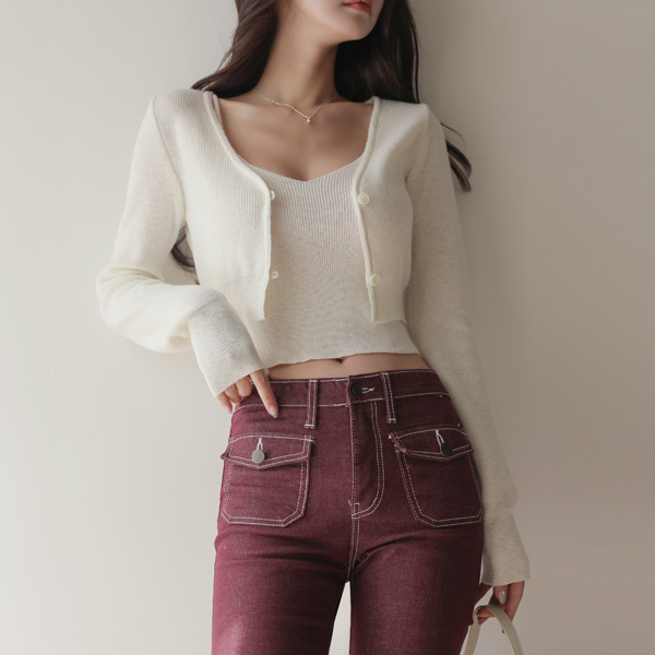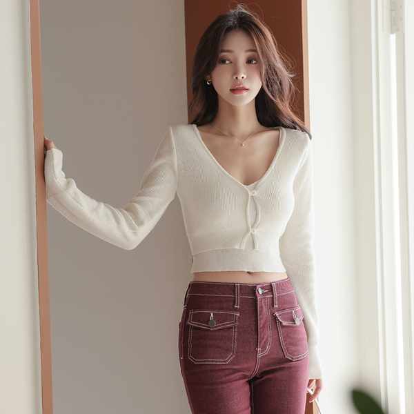 Pony Knit V-neck Crop Knit Cardigan