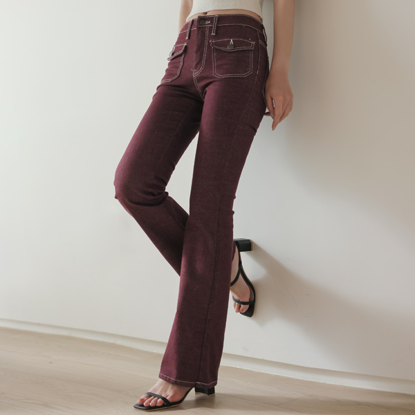 Two-Pocket Stitch Hidden Banding Boot-Cut Pants