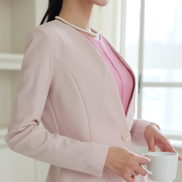 골드팁 버튼으로 잘록한 허리 라인을 잡아주었어요