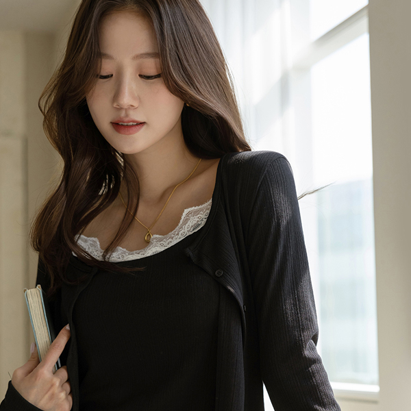[O:neul] 여리무드 Lace Cheese Sleeveless shirts&Cardigan SET
