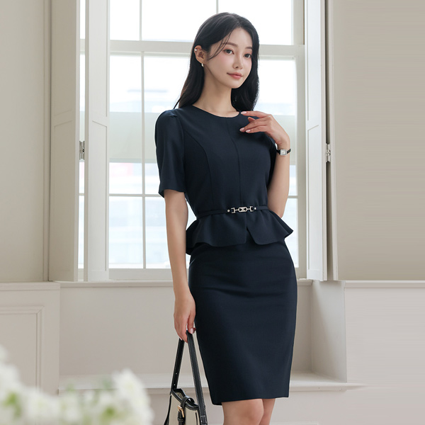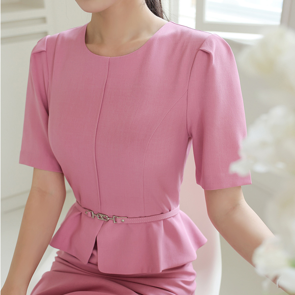 Wave Line Gold Button No-collar Peplum Span Jacket Ⅱ