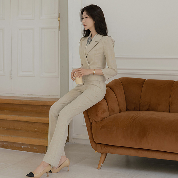 Jane Double-button Linen quality Span Jacket